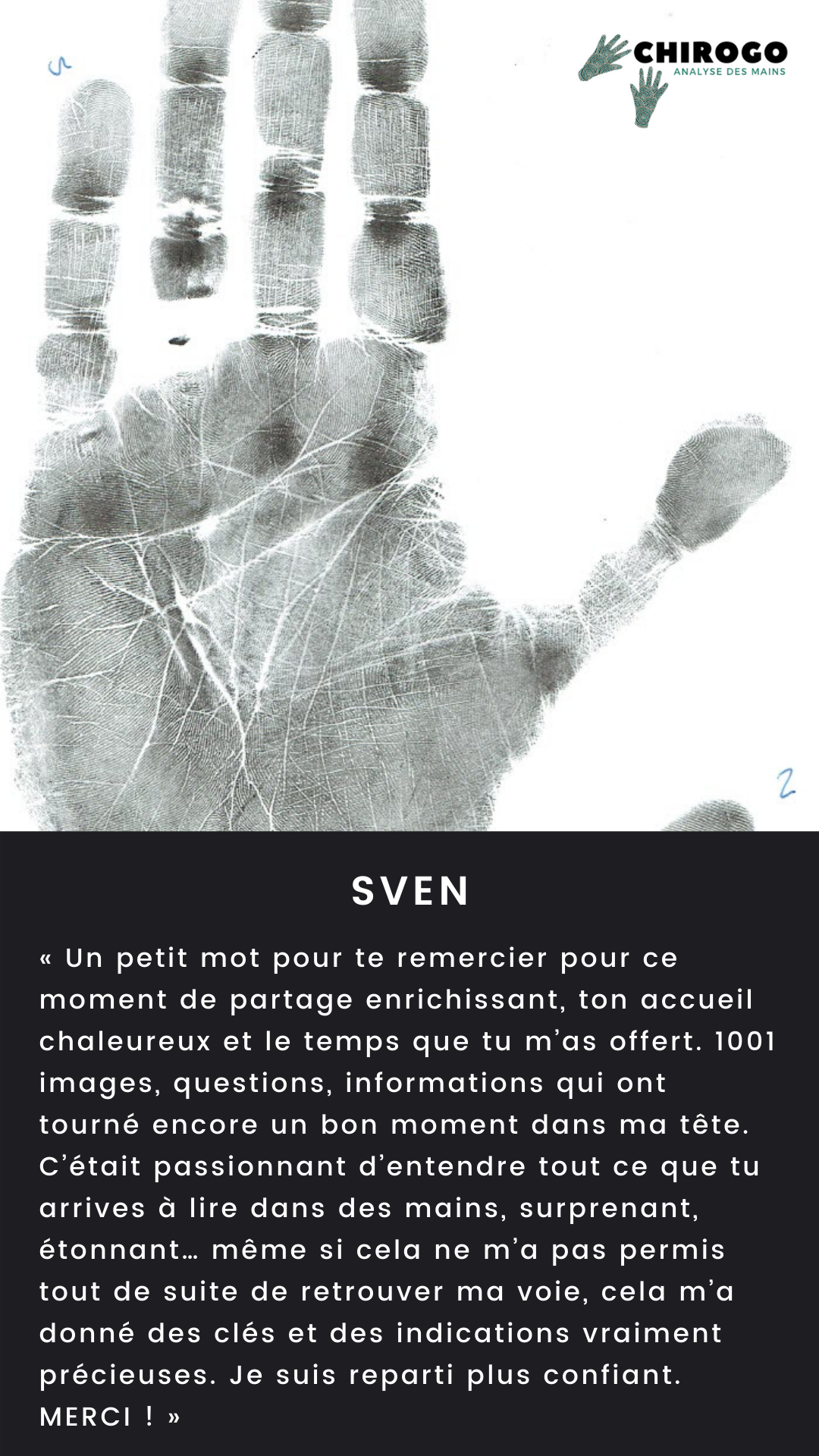 En plus des consultations, Chirogo organise des ateliers, des conférences et des événements où vous pourrez explorer l'histoire de la chirologie, les profils amoureux, les vocations professionnelles, les tempéraments et la gestuelle des mains.